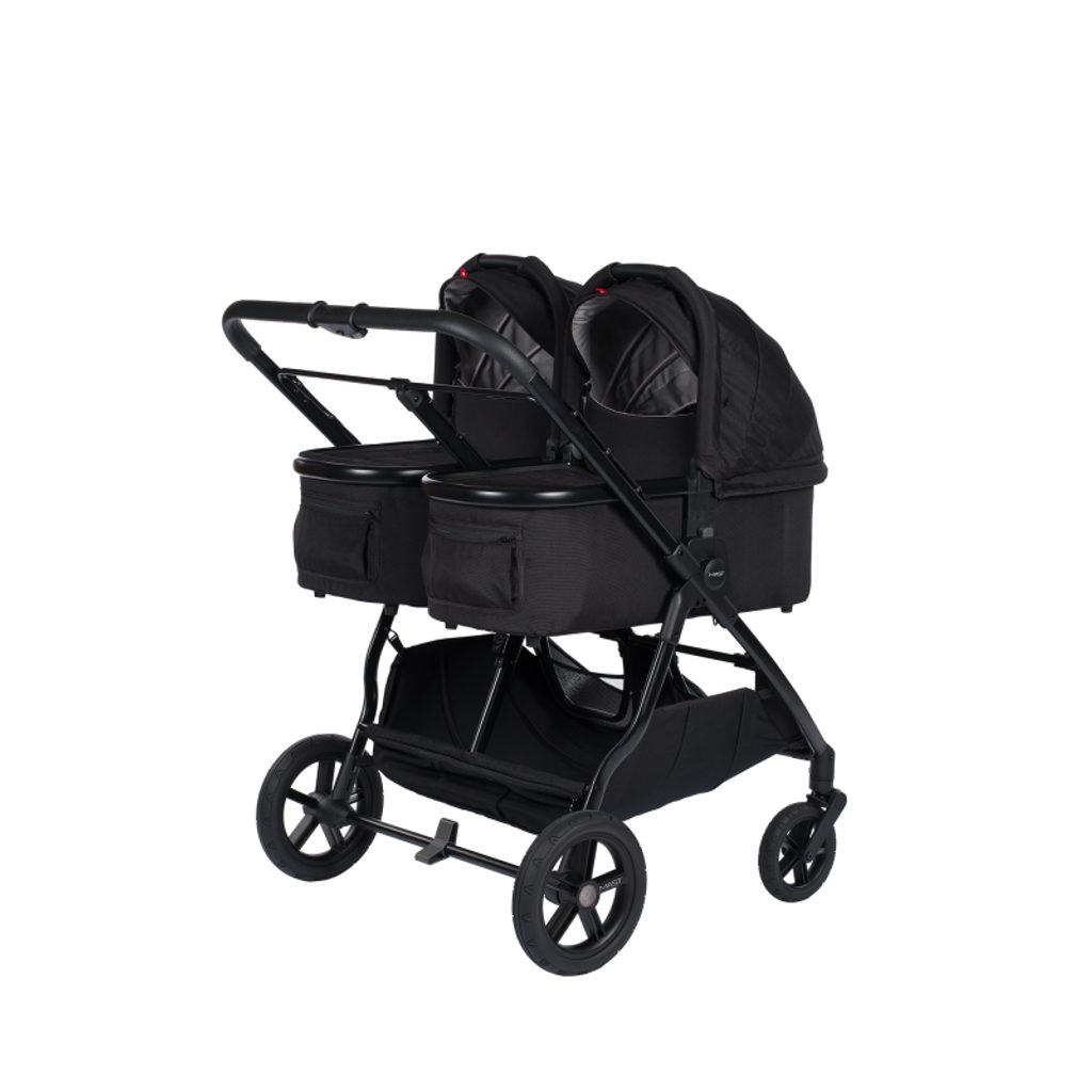 Můžete začít se dvěma hlubokými díly, dvěma autosedačkami nebo dvěma sedacími částmi vedle sebe na rámu kočárku. Možnosti kombinací jsou prakticky nekonečné—jedna autosedačka a jedna sedací část, nebo hluboký díl a sedací část—vždy podle potřeb vás a vašich dětí.