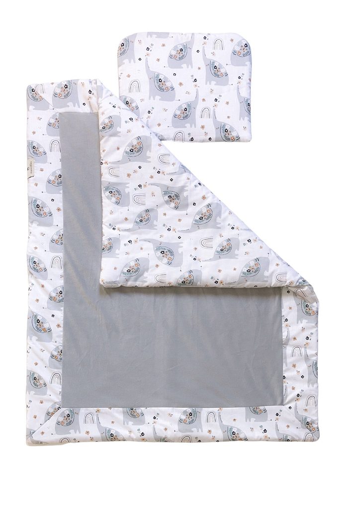 Set obsahuje polštářek a peřinku, oboje vyplněno antialergickým vláknem. Potah soupravy je v kombinaci 100% bavlny a velvetu (jemný krátký samet). Potah není možné sundat. Celá souprava se dá vyprat na 40°C, díky čemuž se lépe udržuje hygienická čistota pro vaše nejmenší.