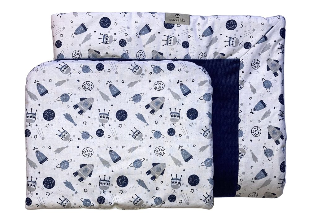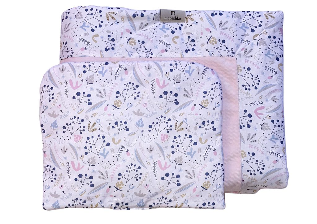 Souprava do postýlky Maceshka obsahuje polštářek a peřinku z dutého vlákna v jemném povlaku z bavlny a velvetu.