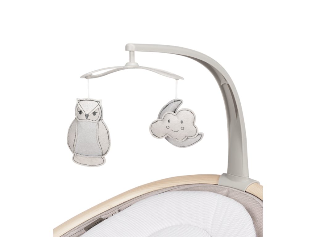Lehátko nabízí pět nastavitelných rychlostí houpání a časovač na 8, 15 nebo 30 minut. Můžete jej otočit o 360°, což vám umožní mít dítě stále na očích, bez ohledu na jeho pozici v místnosti. K dispozici jsou dvě polohy sklonu – pro spánek i pro pozorování světa kolem.