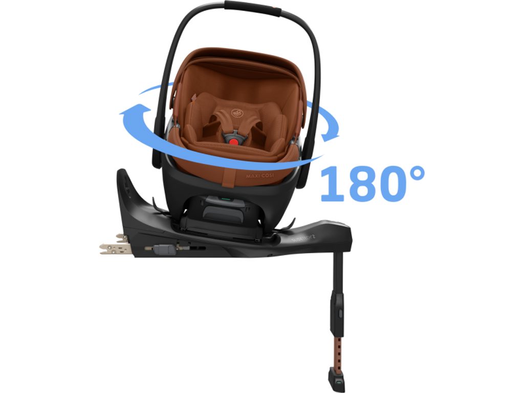 - Základna nabízí 360° otáčení a technologii SlideTech®2, díky které sedačku vysunete až o 27 cm směrem k sobě – ideální i do menších aut.