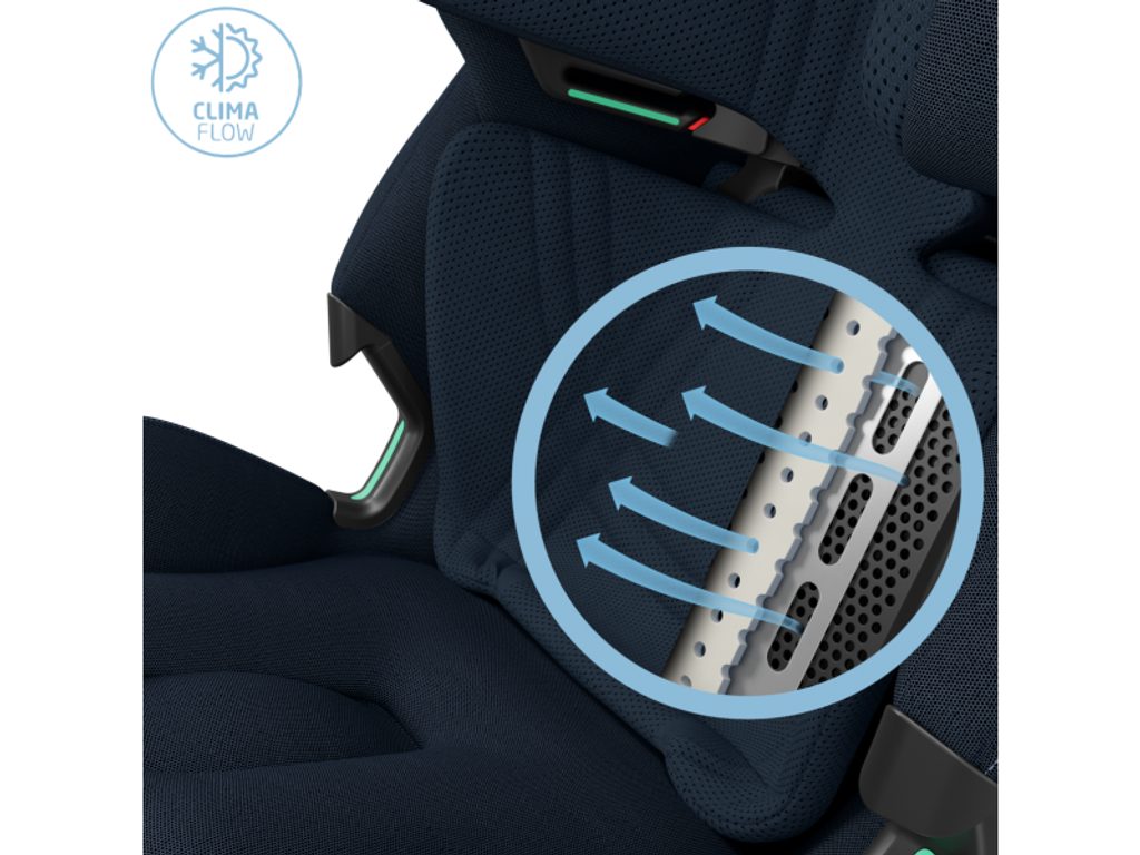 Autosedačka je vybavena vyjímatelnou vložkou pro novorozence a nabízí 5 různých variant náklonu pro maximální pohodlí. Ventilace ClimaFlow v opěrce zad zajišťuje optimální teplotní komfort během jízdy, zatímco opěrka hlavy z paměťové pěny a měkké polstrování poskytují dítěti příjemné a pohodlné sezení.