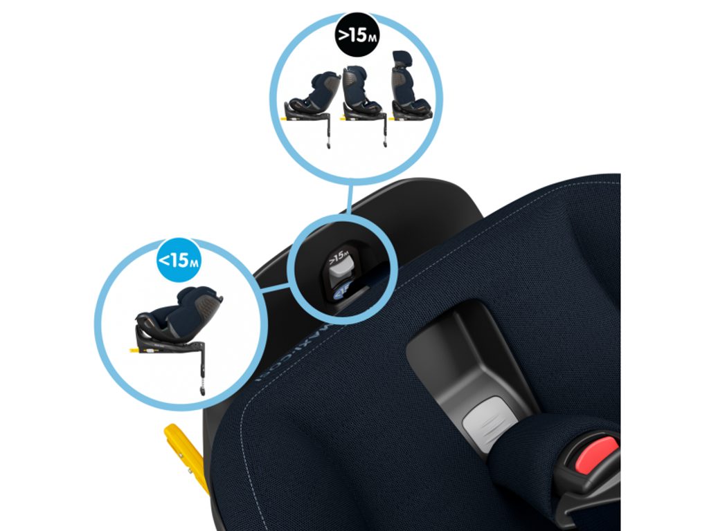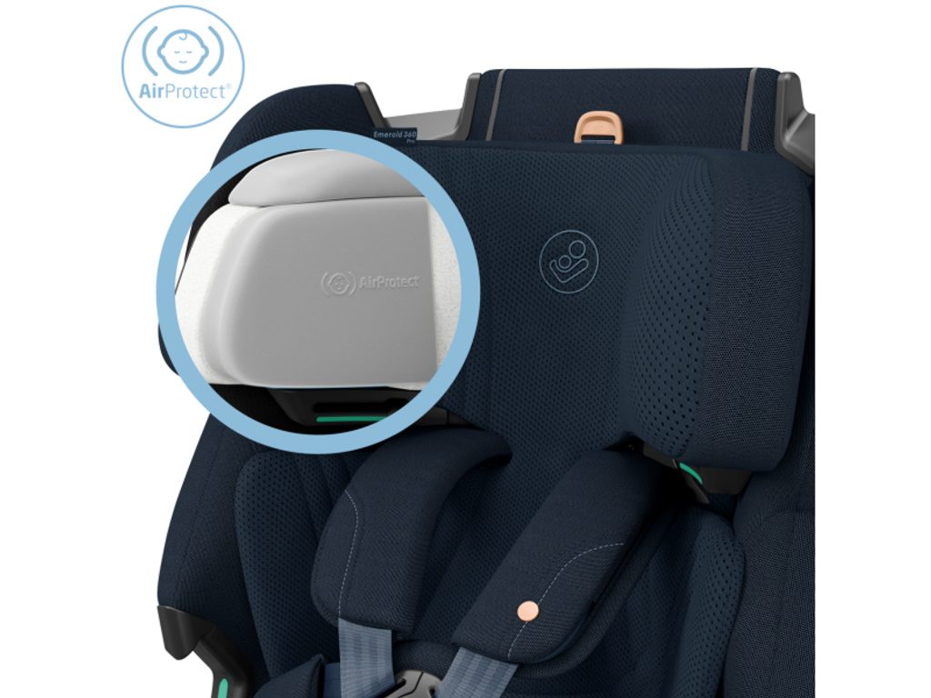 Maxi-Cosi Emerald 360 Pro umožňuje cestování proti směru jízdy, což poskytuje lepší ochranu hlavy a krku dítěte od narození do 4 let. Po dosažení 15 měsíců je možné sedačku otočit po směru jízdy. Integrovaná základna se instaluje do auta pomocí systému ISOFIX a vizuální indikátor zajistí správné připevnění autosedačky.