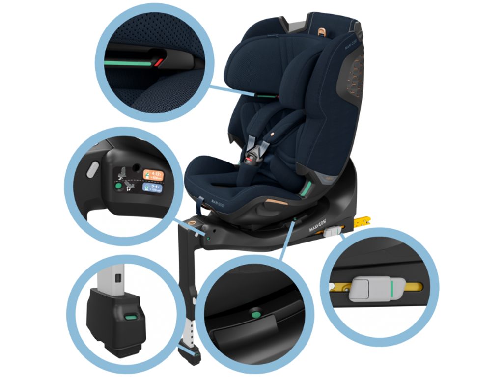 - Unikátní otočná a vysouvací technologie o 360° usnadňuje manipulaci s dítětem v autě.