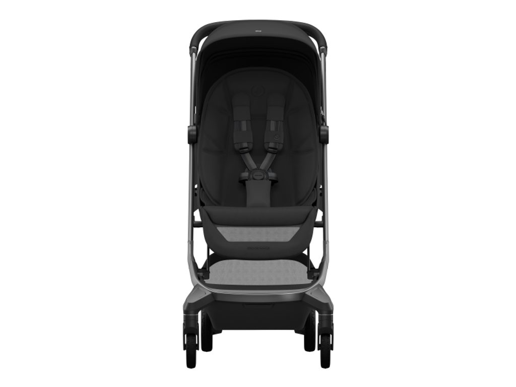 Velká stříška s UPF 50+ chrání dítě před sluncem a vytváří příjemný stín v horkých dnech. Elegantní vzhled doplňuje ergonomická rukojeť z veganské kůže, která se pohodlně drží, a je možné dokoupit i madlo před dítě potažené veganskou koženkou. Odnímatelný sedák umožňuje vytvořit cestovní systém Maxi-Cosi – kočárek je kompatibilní s autosedačkami Maxi-Cosi kategorie 0 (například Maxi-Cosi Coral Slide Pro) i s korbičkou pro novorozence, které se prodávají samostatně. S adaptéry pro autosedačku tak získáte kompletní cestovní systém od narození do 4 let.