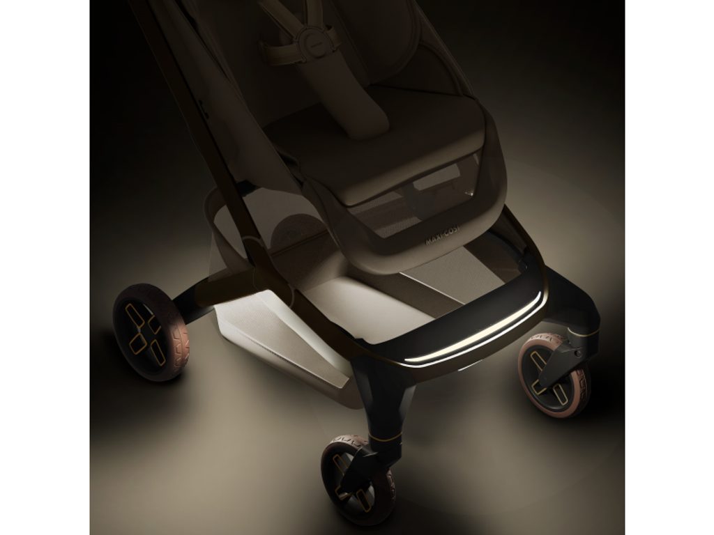 Velká stříška s UPF 50+ chrání dítě před sluncem a vytváří příjemný stín v horkých dnech. Elegantní vzhled doplňuje ergonomická rukojeť z veganské kůže, která se pohodlně drží, a je možné dokoupit i madlo před dítě potažené veganskou koženkou. Odnímatelný sedák umožňuje vytvořit cestovní systém Maxi-Cosi – kočárek je kompatibilní s autosedačkami Maxi-Cosi kategorie 0 (například Maxi-Cosi Coral Slide Pro) i s korbičkou pro novorozence, které se prodávají samostatně. S adaptéry pro autosedačku tak získáte kompletní cestovní systém od narození do 4 let.