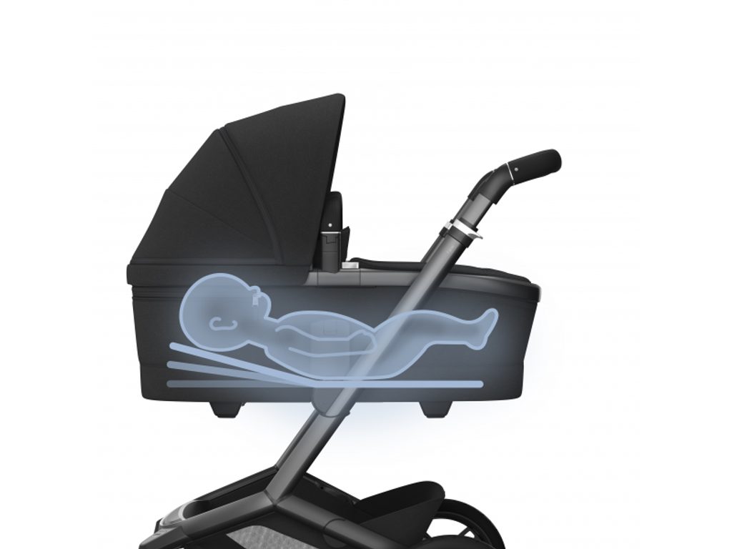 Prostorná korbička s oboustrannou prodyšnou matrací z paměťové pěny a ventilačním okénkem zajišťuje optimální klima i během horkých dnů. Inovativní systém SoothingSlope umožňuje snadno nastavit jemně nakloněnou polohu pro spaní, která pomáhá minimalizovat riziko refluxu. Díky unikátnímu systému výškového nastavení Close2Me si můžete korbičku přizpůsobit své výšce a už nikdy vás nebudou bolet záda při manipulaci s dítětem.