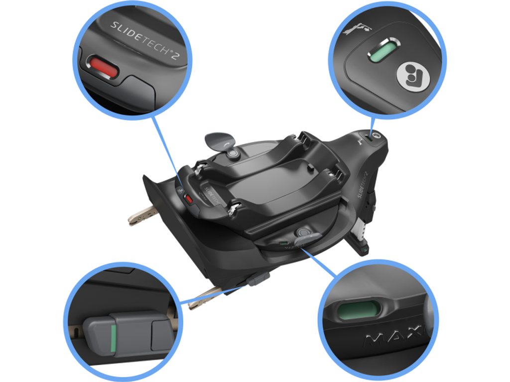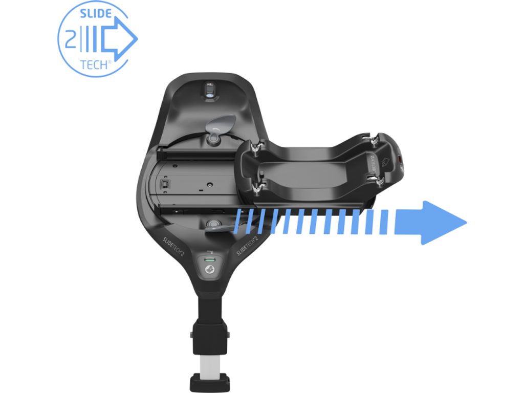 Revoluční posuvná a otočná základna Maxi-Cosi FamilyFix Slide Pro přináší maximálně bezpečný způsob přepravy dítěte a zároveň výrazně usnadňuje každodenní usazování do autosedačky. Díky unikátní technologii SlideTech®2 můžete autosedačku otočit a vysunout směrem k sobě až o 27 cm – žádné krkolomné předklánění, jen otočit, vysunout, pohodlně usadit a zasunout zpět.