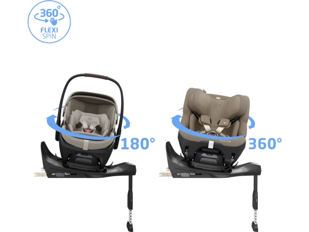 FamilyFix Slide Pro nabízí otočný systém, díky kterému autosedačku jednou rukou snadno otočíte pro pohodlné usazení a připoutání dítěte. Díky technologii FlexiSpin je možné autosedačku otáčet o 360° v jakékoli poloze, takže manipulace je snadná i v nakloněných polohách. Bezpečnostní zámek rotace zajišťuje, že autosedačka s dítětem bude v jedoucím autě vždy správně zafixovaná po či proti směru jízdy.
