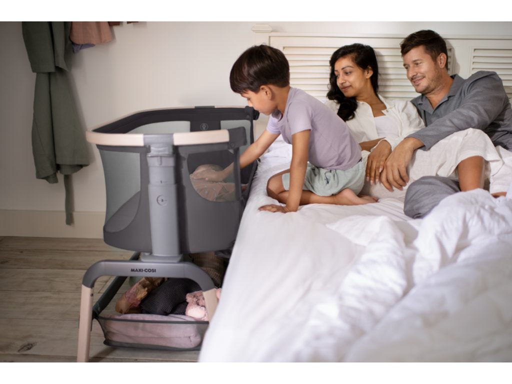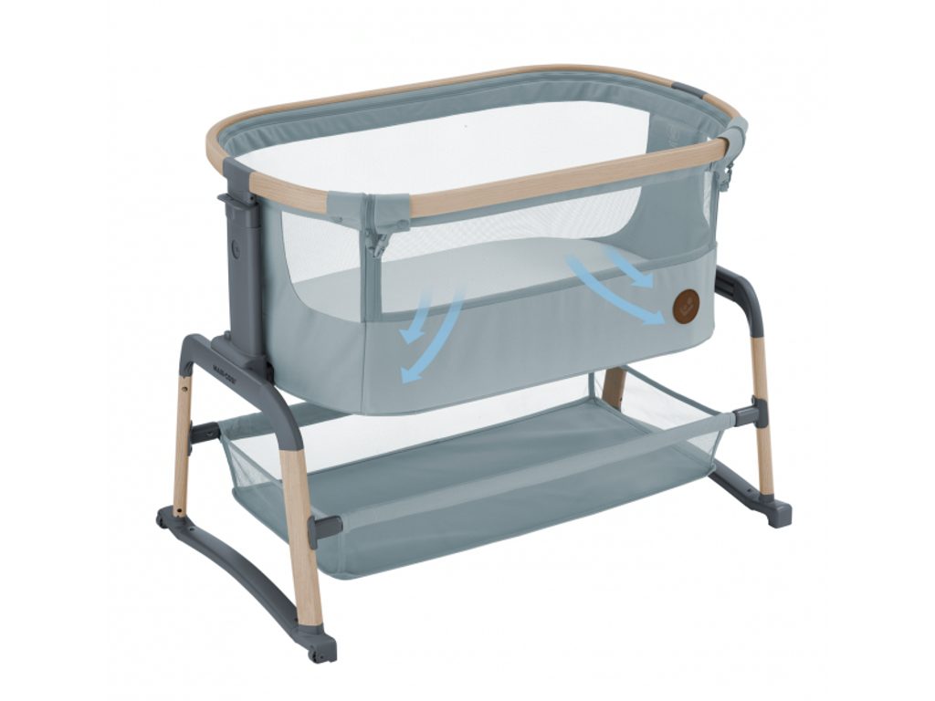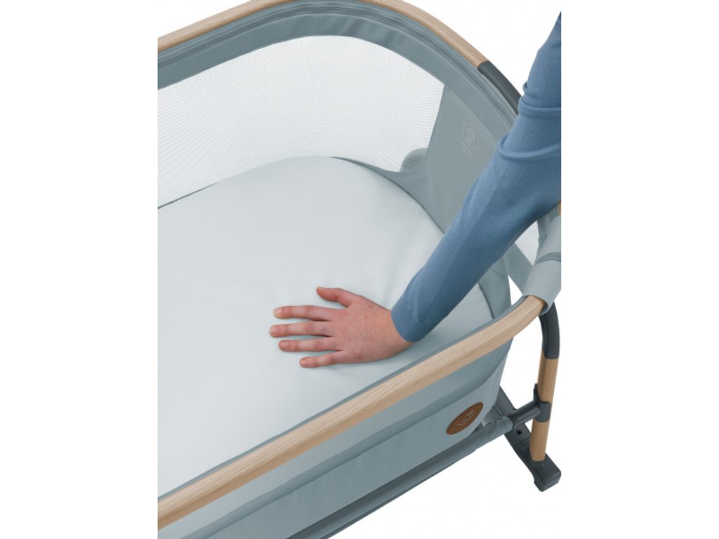 Postýlka Maxi-Cosi Iora Air je ideální pro všechny rodiče, kteří chtějí mít své miminko nablízku i během spánku. Postýlka nabízí 5 výškových poloh a možnost úpravy bočnice, abyste miminko mohli mít na dosah ruky vedle své postele. Postýlka nabízí možnost houpání do stran jako v kolébce pro snadnější uspání miminka. Pokud vaše miminko trápí reflux, můžete využít možnost matraci umístit do lehce šikmé polohy s vyvýšenou horní částí. Postýlka je vybavena kvalitní pěnovou matrací. Boční síťované stěny zajišťují větrání postýlky. Prostorný úložný koš pod postýlkou můžete využít pro uložení všeho nezbytného pro přebalování a celkovou péči o miminko. Neviditelná kolečka usnadňují přesunování postýlky v interiéru. Postýlku je možné složit do praktické cestovní tašky a využít ji i na cestách. Textilní části postýlky jsou s ohledem na udržitelnost životního prostředí vyrobeny ze 100% recyklovaných materiálů. Snadno snímatelný potah postýlky i úložný koš je možné prát v pračce. Vhodné pro děti od narození do 9 kg (cca do 6 měsíců). Hmotnost: 9,7 kg Rozměry: D 97 cm x Š 52,3 cm Upozornění: Postýlka je vhodné pouze do doby, než se dítě začne zvedat na kolena a ruce.