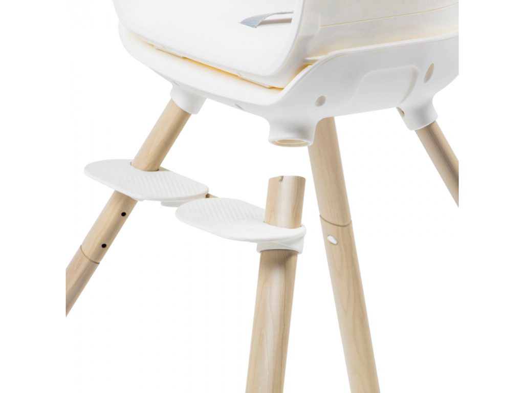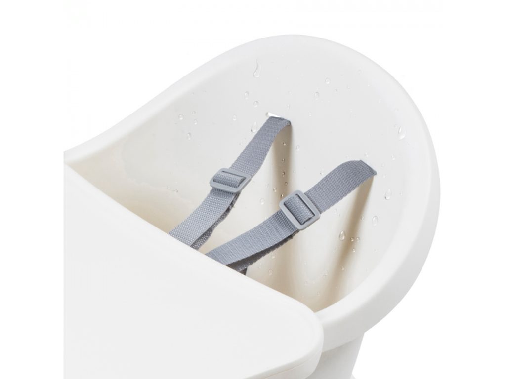 Pohodlné a bezpečné sezení dítěti zajišťují nastavitelná opěrka nohou a bezpečnostní 5bodové pásy. Při znečištění židličku snadno otřete, snímatelnou podložku na jídelní pult lze umýt v myčce. Protiskluzové zakončení nohou poskytuje židličce stabilitu, zatímco její nízká hmotnost umožňuje snadné přenášení. Montáž je velmi rychlá a jednoduchá.