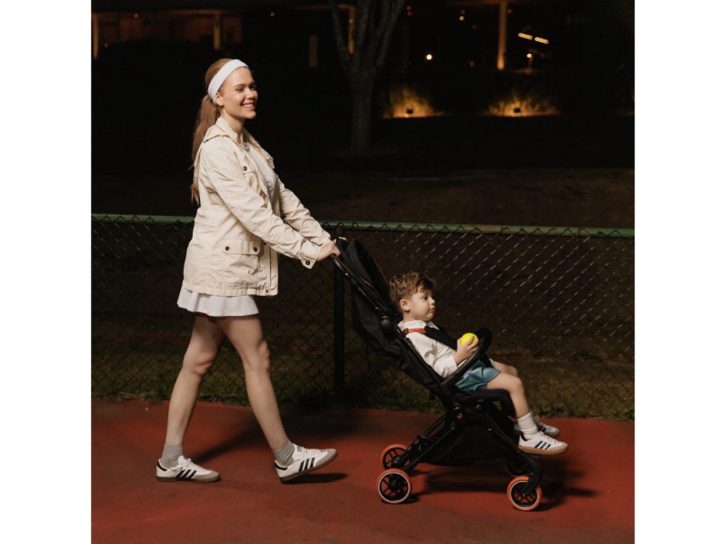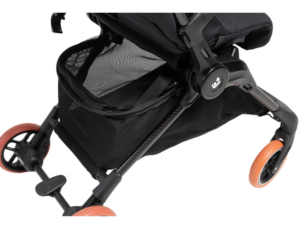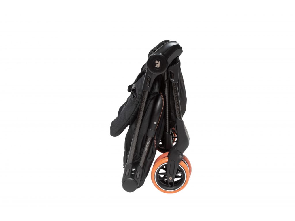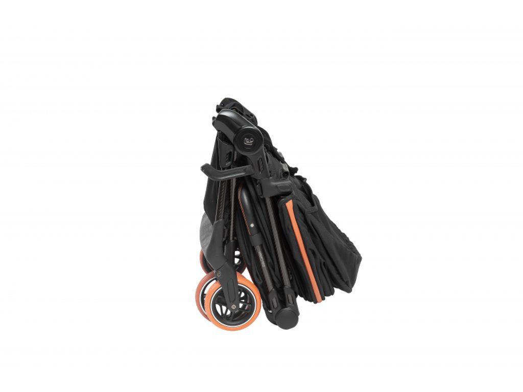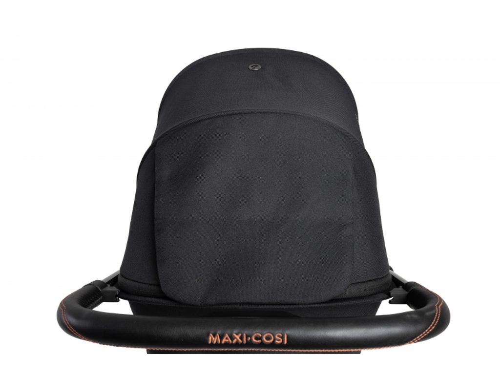 Maxi-Cosi Oslo Carbon se skládá do ultrakompaktního tvaru, po složení samostatně stojí a díky integrovanému popruhu přes rameno a madlu se pohodlně přenáší. Prostorný košík na zip udrží věci v bezpečí a přehledně uložené, takže nic nevypadne ani při manipulaci v letadle či vlaku.