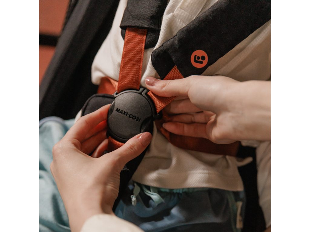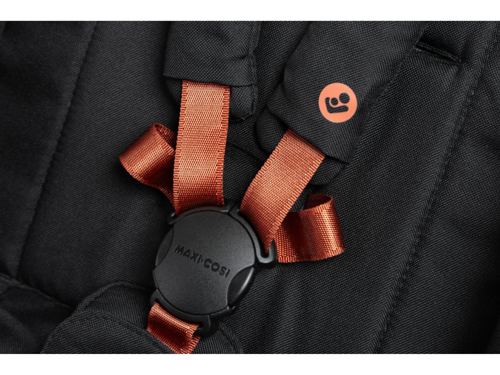 Praktické Easy-in 5bodové pásy s magnetickou přezkou usnadňují usazení a připoutání dítěte – popruhy nepřekážejí a zapnutí je rychlé a intuitivní. Dítě tak sedí bezpečně i při delších cestách.