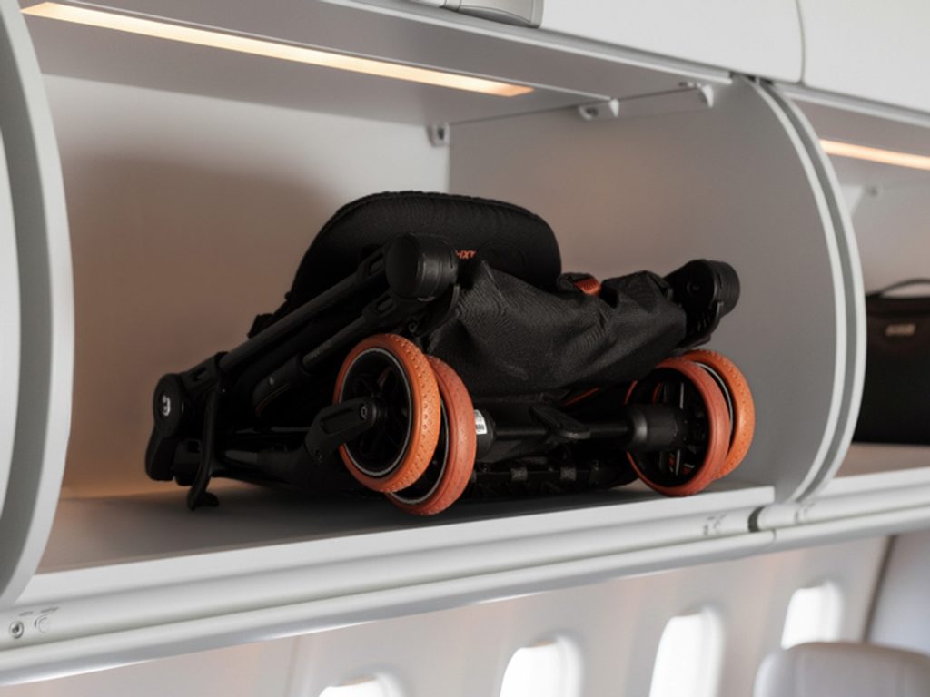 Kočárek se skládá do ultrakompaktního tvaru velikosti příručního zavazadla, ale přesné rozměrové limity se liší podle letecké společnosti, proto je vždy dobré je před letem ověřit.
