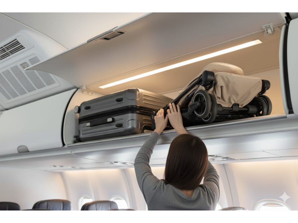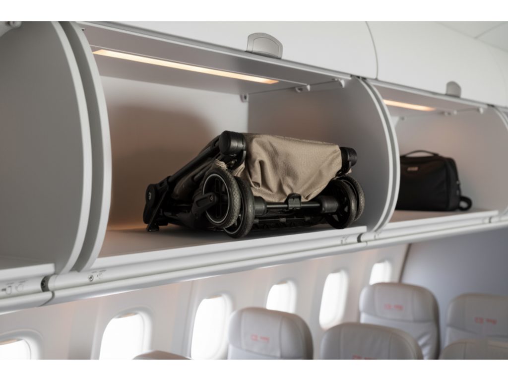 Kočárek se skládá do ultrakompaktního tvaru velikosti příručního zavazadla, ale přesné rozměrové limity se liší podle letecké společnosti, proto je vždy dobré je před letem ověřit.