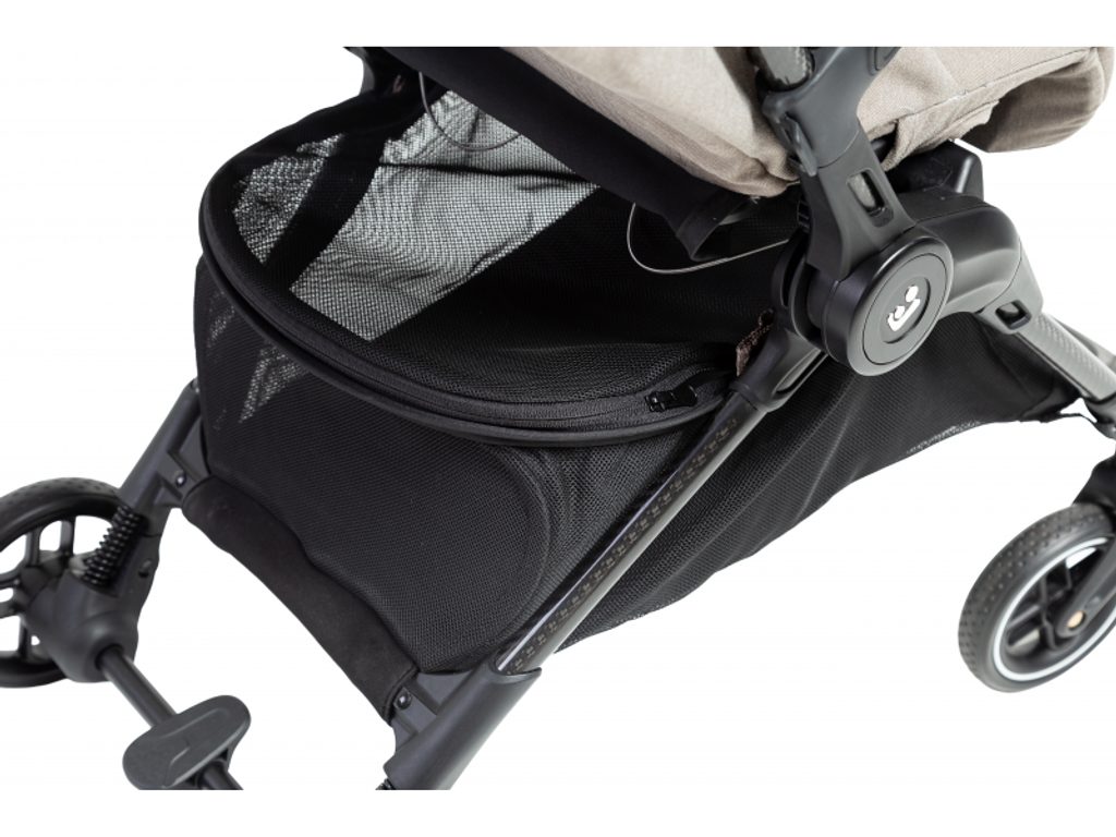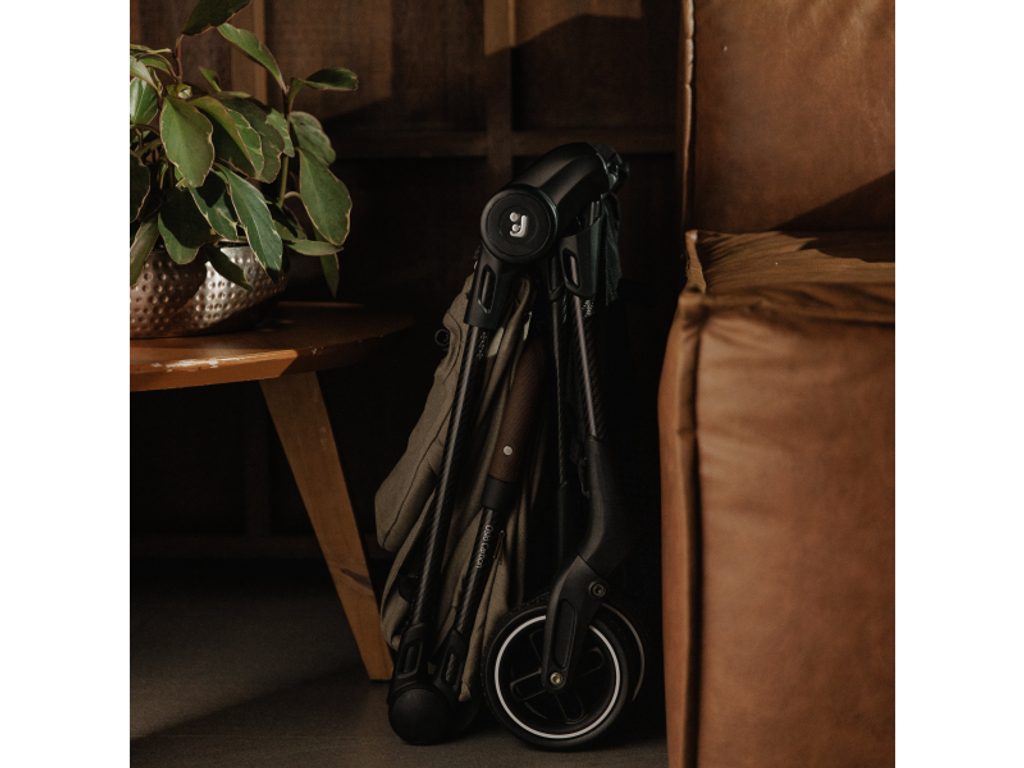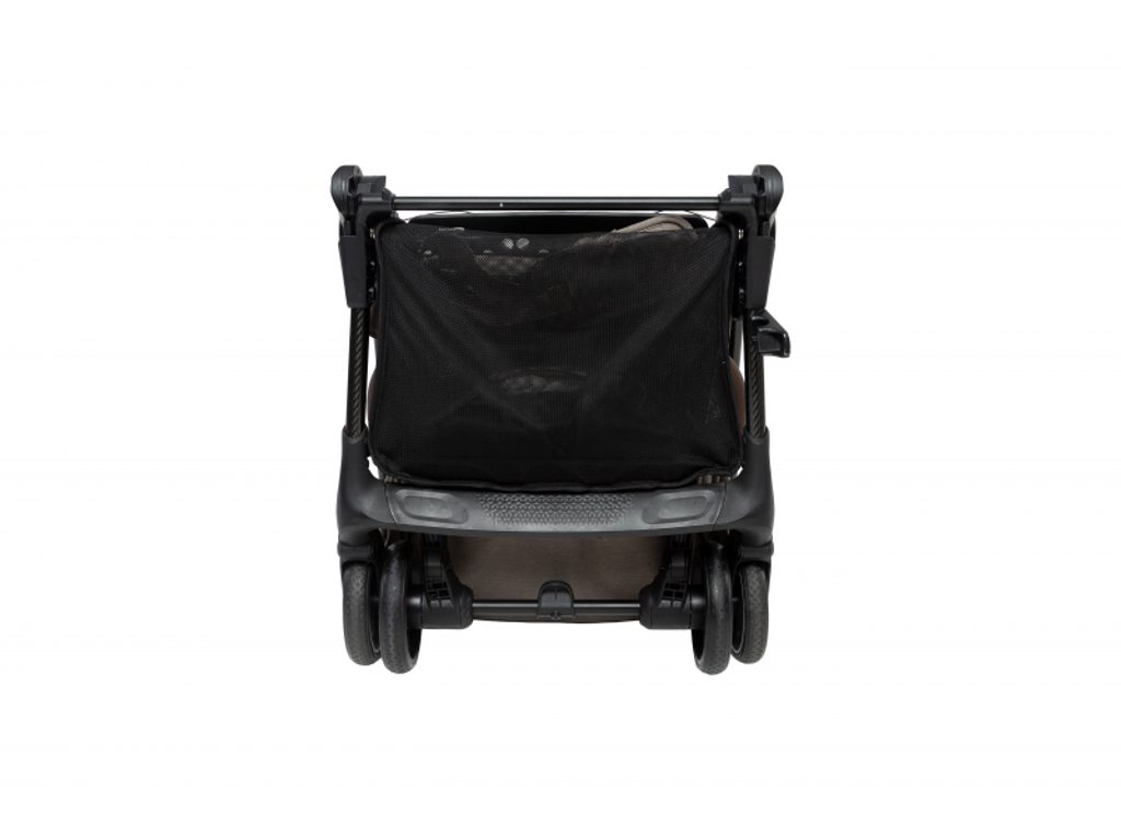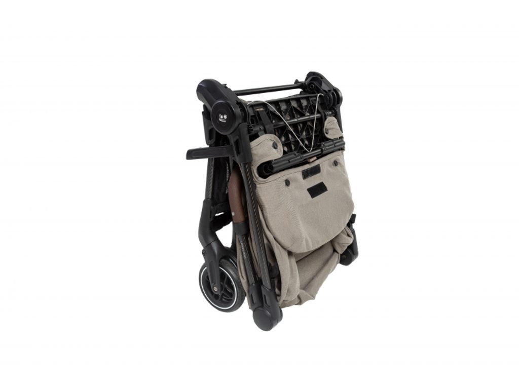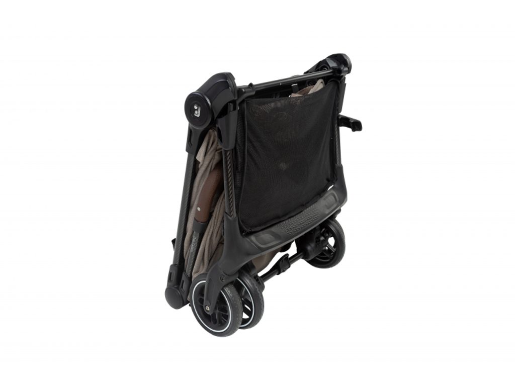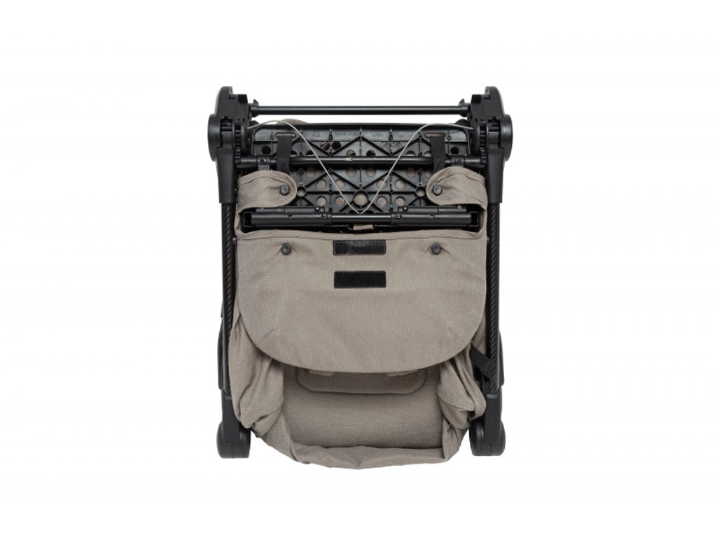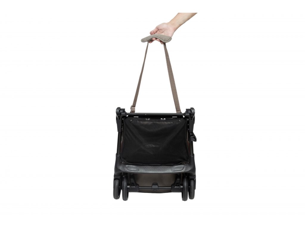 Maxi-Cosi Oslo Carbon se skládá do ultrakompaktního tvaru, po složení samostatně stojí a díky integrovanému popruhu přes rameno a madlu se pohodlně přenáší. Prostorný košík na zip udrží věci v bezpečí a přehledně uložené, takže nic nevypadne ani při manipulaci v letadle či vlaku.
