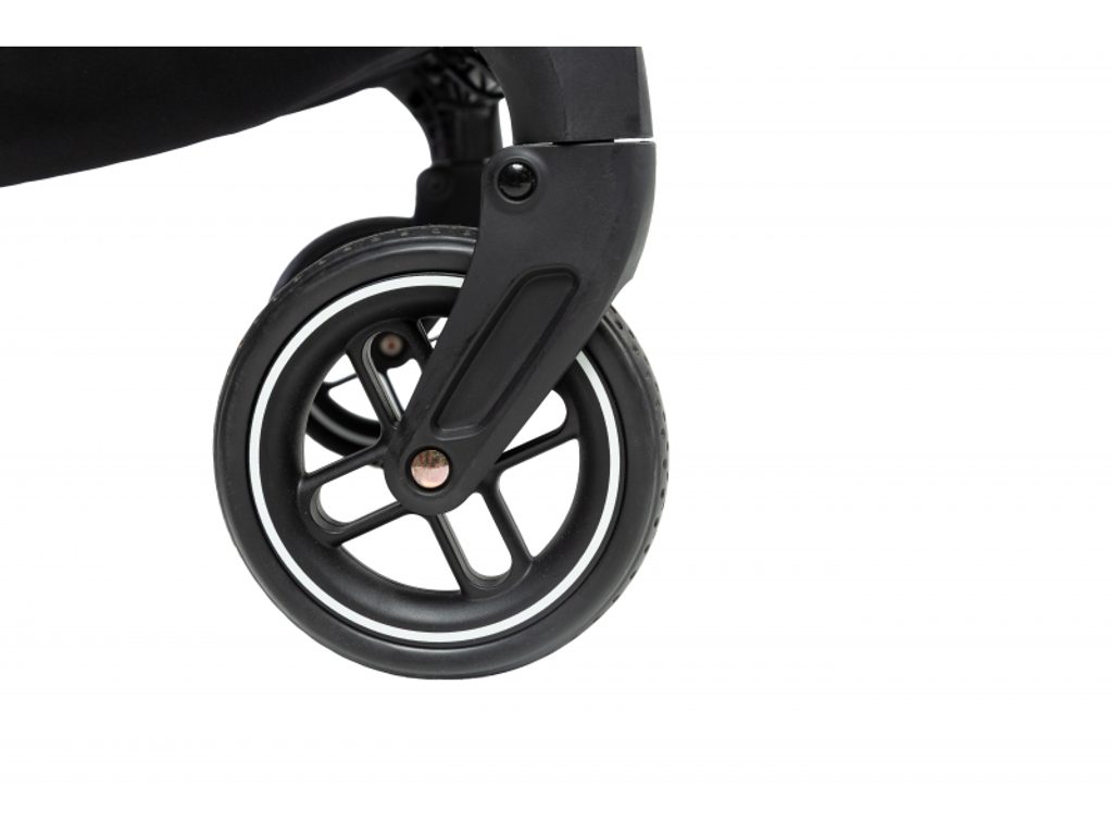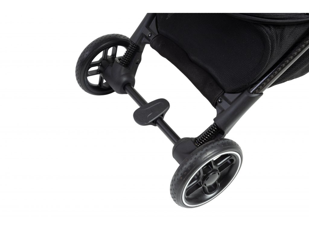 Kočárek je vybaven odpružením všech 4 kol, které se postará o stabilní a pohodlnou jízdu na městských chodnících i při cestování. Odolná kola zvládnou každodenní používání a časté skládání.