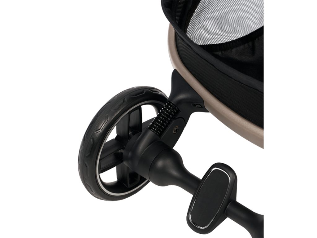 Prostorný, ergonomický sedák nabízí plynulé polohování až do úplného lehu, takže je kočárek vhodný od narození. Nastavitelná opěrka nohou podpoří pohodlnou polohu při spánku i sezení. Moderní odpružení všech kol zajišťuje plynulou jízdu na městských dlažbách i nerovnostech na cestách. Rozšiřitelná stříška s UPF 50+ a ventilačním okénkem chrání dítě před sluncem a zároveň umožňuje lepší proudění vzduchu.