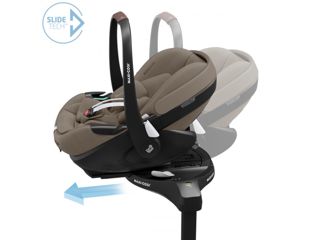 Revoluční technologie SlideTech™ umožňuje autosedačku otočit a vysunout směrem k sobě, takže dítě usadíte bez zbytečného ohýbání zad.