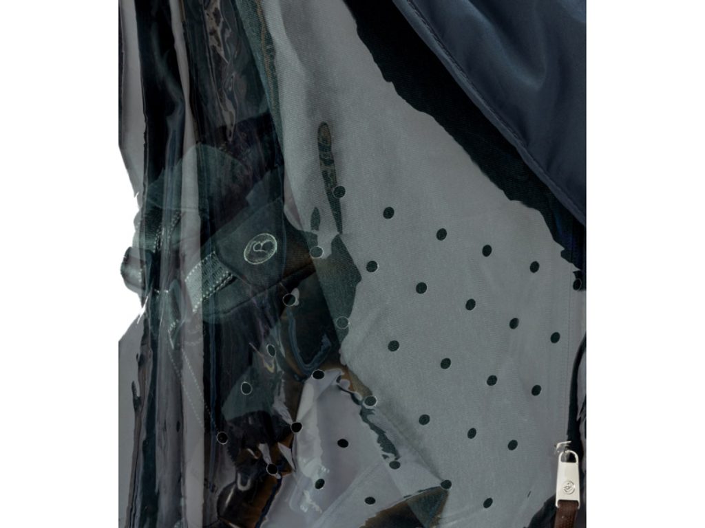 Velké otevírací okénko v přední části umožní rychlý přístup k dítěti bez nutnosti celou pláštěnku sundávat. Pokud déšť na chvíli přestane, stačí okénko jednoduše otevřít a nechat do kočárku volně proudit čerstvý vzduch. Větrací otvory v bočních částech navíc zajišťují stálou cirkulaci vzduchu uvnitř kočárku a zabraňují nepříjemnému přehřátí.