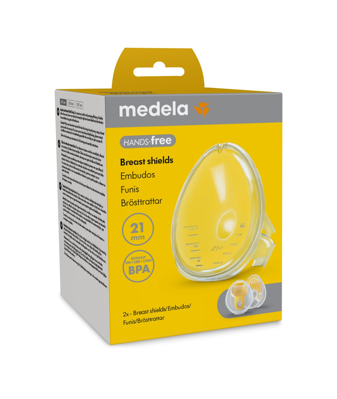 Autentické příslušenství k odsávačkám Medela: Medela nabízí tři velikosti náhradních prsních nástavců testovaných a navržených tak, aby fungovaly s vašimi sběrnými nádobkami Medela Hands-free, které jsou nyní k dispozici i s odsávačkoami Medela Hands-free.