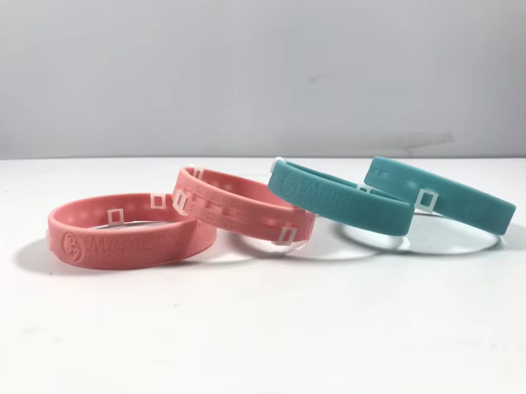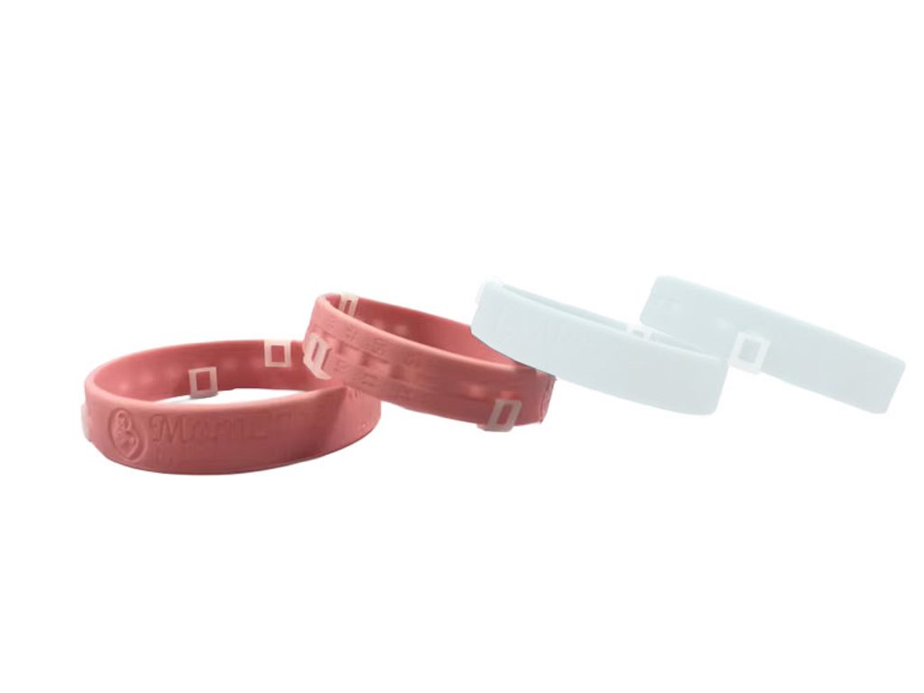 Silikonový náramek pro záznam kojení.
