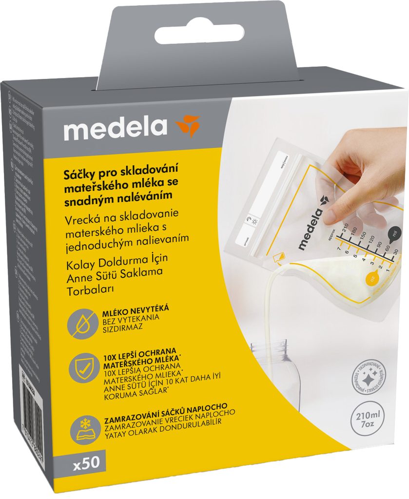 Sáčky mají speciální otvory pro snadné nalévání a vylévání mléka bez rozlití, lepší ochranu proti kyslíku, a umožňují efektivní zmrazování. Jsou bezpečné pro dítě, neobsahují BPA a jsou plně recyklovatelné. -