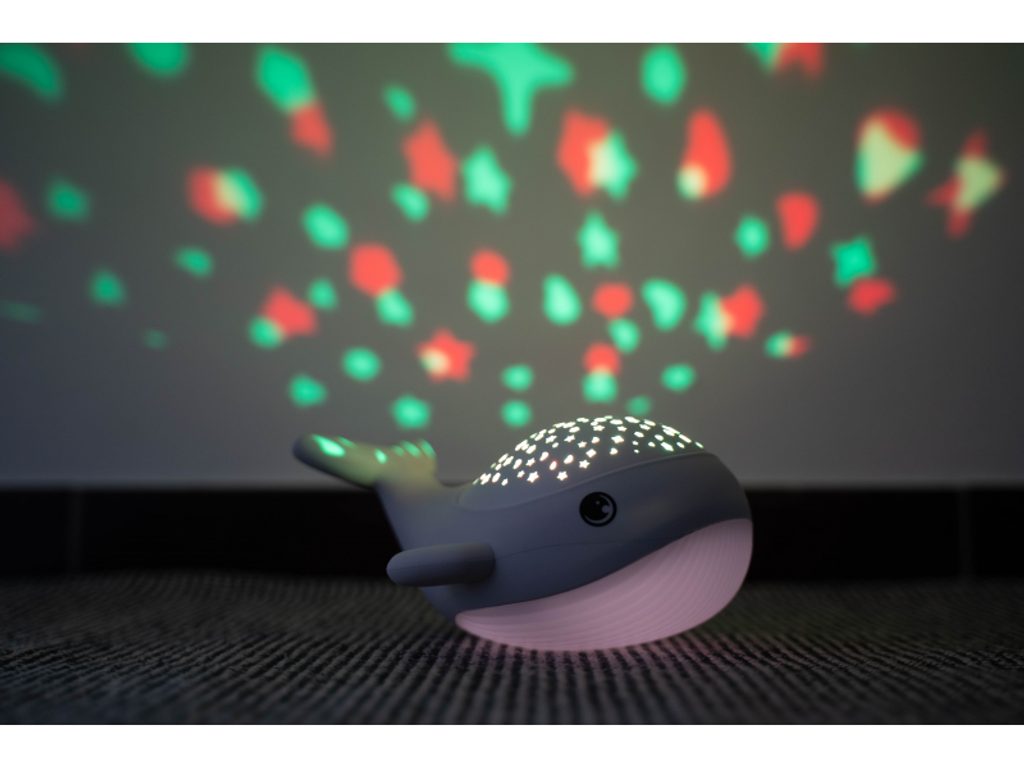 Noční světlo s projekcí hvězdiček MegaLight Willy Whale v podobě roztomilé velryby poskytne vašemu dítěti pocit bezpečí a zajistí klidný spánek. Díky svému milému designu bude také krásnou dekorací v dětském pokoji. LED světlo nabízí na výběr teplé bílé světlo a RGB barevnou projekci. Umožňuje regulaci intenzity světla a má automatické vypnutí projekce po 30 minutách. Světlo se snadno ovládá dotykem. Baterie vydrží až 120 hodin při ztlumeném režimu a 7 hodin při projekci. Nabíjení probíhá pomocí přiloženého USB-C kabelu. Světlo bylo testováno v souladu se směrnicemi o bezpečnosti hraček.