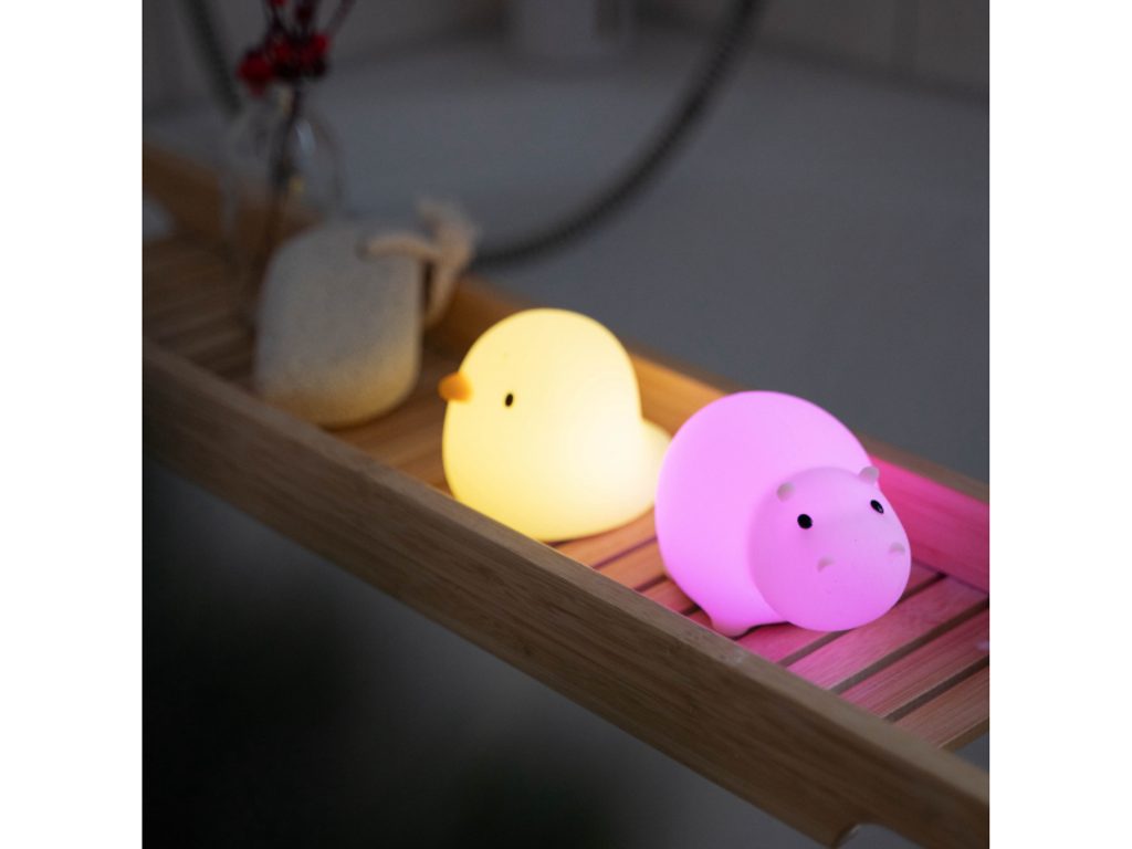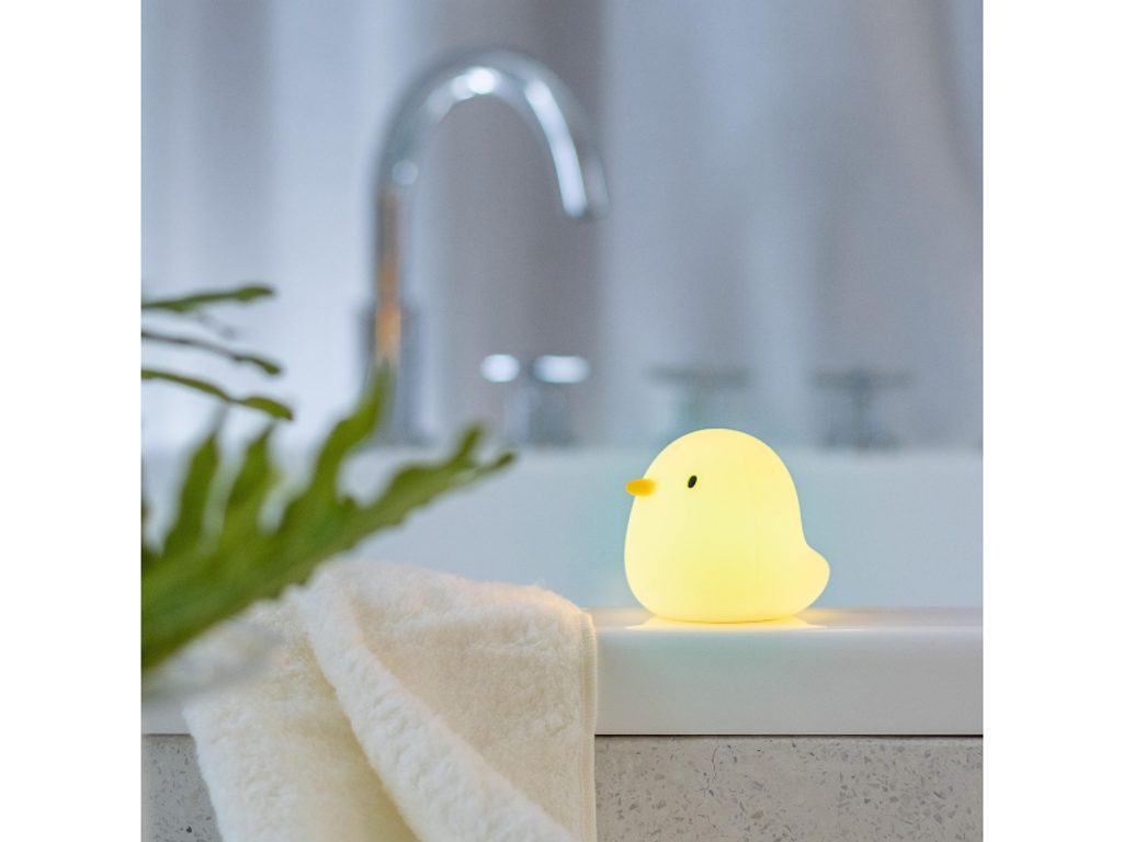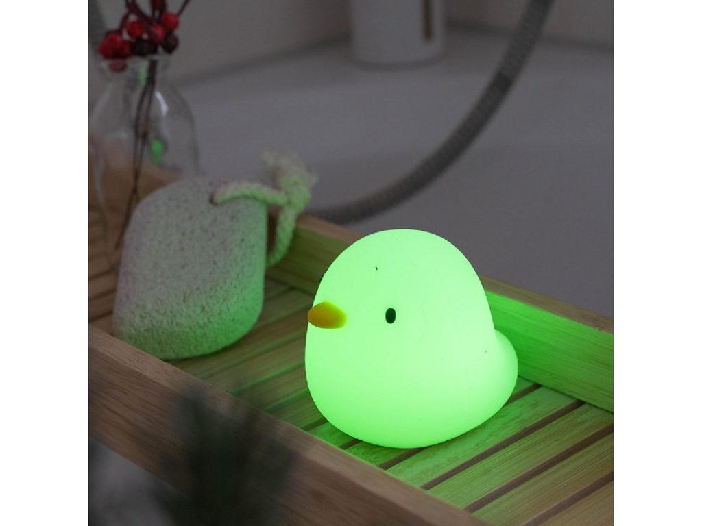 Světlo do vany MegaLight Swimmy Duck v podobě roztomilé kačenky poskytne vašemu dítěti zábavu během koupání ve vaně. Díky svému designu bude i krásnou dekorací v dětském pokoji. LED světlo s nabíjecí baterií 7 RGB barev snadné ovládání dotykem automatické vypnutí po 5 minutách bez doteku životnost baterie 25 hodin nabíjení s pomocí přiloženého USB-C kabelu testováno v souladu se směrnicemi o hračkách Složení: ABS, polykarbonát, silikon Rozměry: 84 x 73 x 73 mm Vhodné pro děti od 3 let.