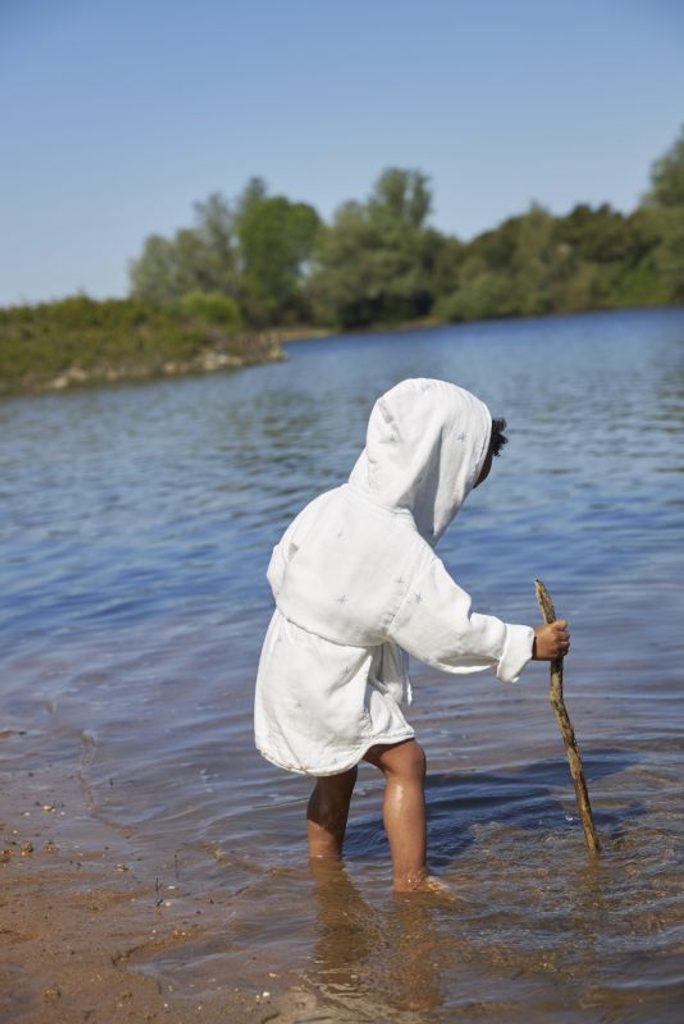 Bambus absorbuje až o 70 % více vlhkosti než bavlněné látky a je rychleschnoucí.Bambus je hypoalergenní. Má chladivý účinek a je přirozeně chráněn proti UV záření, proto je ideální pro použití v létě při plavání.V zimě je bambus teplejší než bavlna a proto rychleji zahřeje Vaše dítě po sprše nebo koupeli. Materiál: 70% bambus a 30% bavlnaVelikost: 110/116 cca 5-6 letPři výrobě bambusu je až o 80% menší dopad na životní prostředí než u bavlny.Materiál je v létě prodyšný a v zimě dobře izoluje.