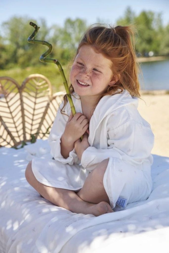 Bambus absorbuje až o 70 % více vlhkosti než bavlněné látky a je rychleschnoucí.Bambus je hypoalergenní. Má chladivý účinek a je přirozeně chráněn proti UV záření, proto je ideální pro použití v létě při plavání.V zimě je bambus teplejší než bavlna a proto rychleji zahřeje Vaše dítě po sprše nebo koupeli. Materiál: 70% bambus a 30% bavlnaVelikost: 110/116 cca 5-6 letPři výrobě bambusu je až o 80% menší dopad na životní prostředí než u bavlny.Materiál je v létě prodyšný a v zimě dobře izoluje.