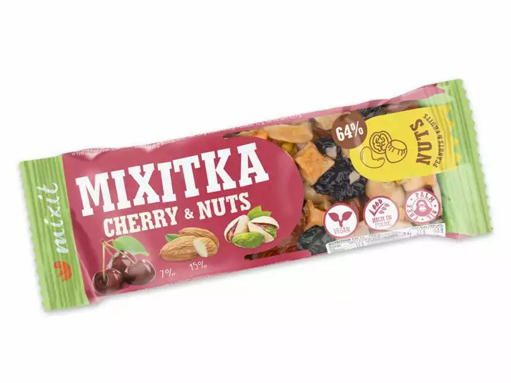 Tohle byl oříšek. Vrtalo nám hlavou, kolik oříšků a arašídů se vejde do jedné Mixitky, aby držela pohromadě jen silou čekankové vlákniny a medu. :-) Výsledek? Celých 71 %! Ochutnejte bohaté a medové spojení mandlí, kešu, arašídů a lískových oříšků. Každá tyčinka obsahuje jen 7,1 % cukru, 15 % bílkovin a je bohatým zdrojem vlákniny. Prostě dokonalý parťák do výletního, pracovního nebo školního batohu. :-) Složení: Mandle 36 %, vláknina z kořene čekanky 25 %, arašídy 17,5 %, kešu pražené 16 %, kokosový tuk 2,5 %, lískové ořechy 1,5 %, med 0,8 %, emulgátor: slunečnicový lecitin; zvlhčovadlo: glycerin; jedlá sůl.Může obsahovat stopy lepku, jiných skořápkových plodů, mléka, sóji a části skořápek.Energetická hodnota2194.0 kJ524.0 kcalTuky39.0 gz toho nasycené mastné kyseliny5.7 gSacharidy18.0 gz toho cukry7.1 gVláknina22.0 gBílkoviny15.0 gSůl0.1 g
