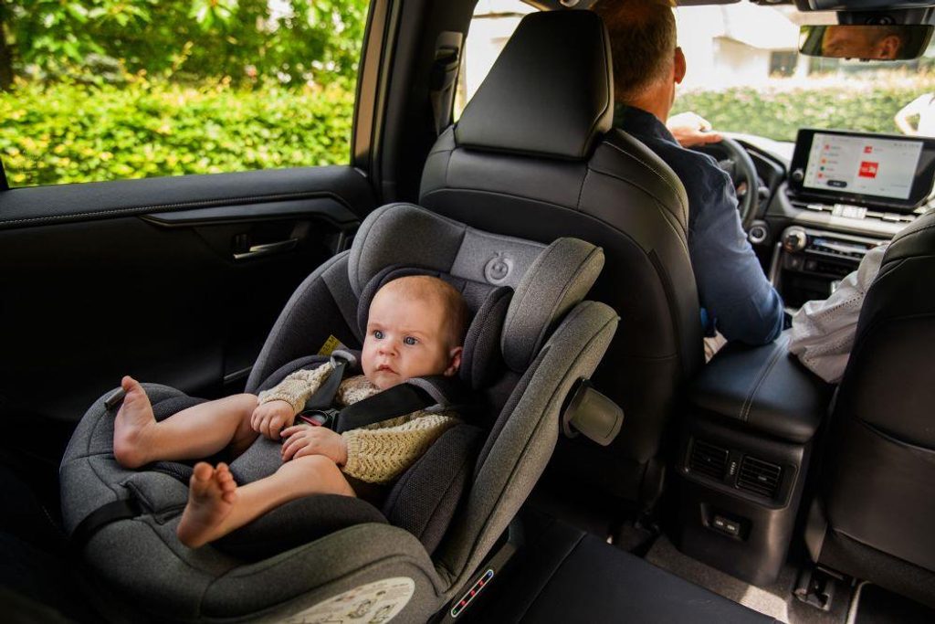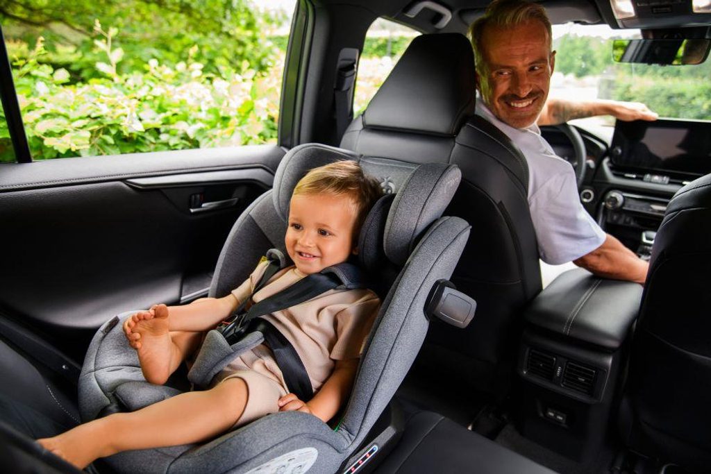 Multifunkční autosedačka MoMi EMi pro děti od 40 do 150 cm, s otočnou základnou.