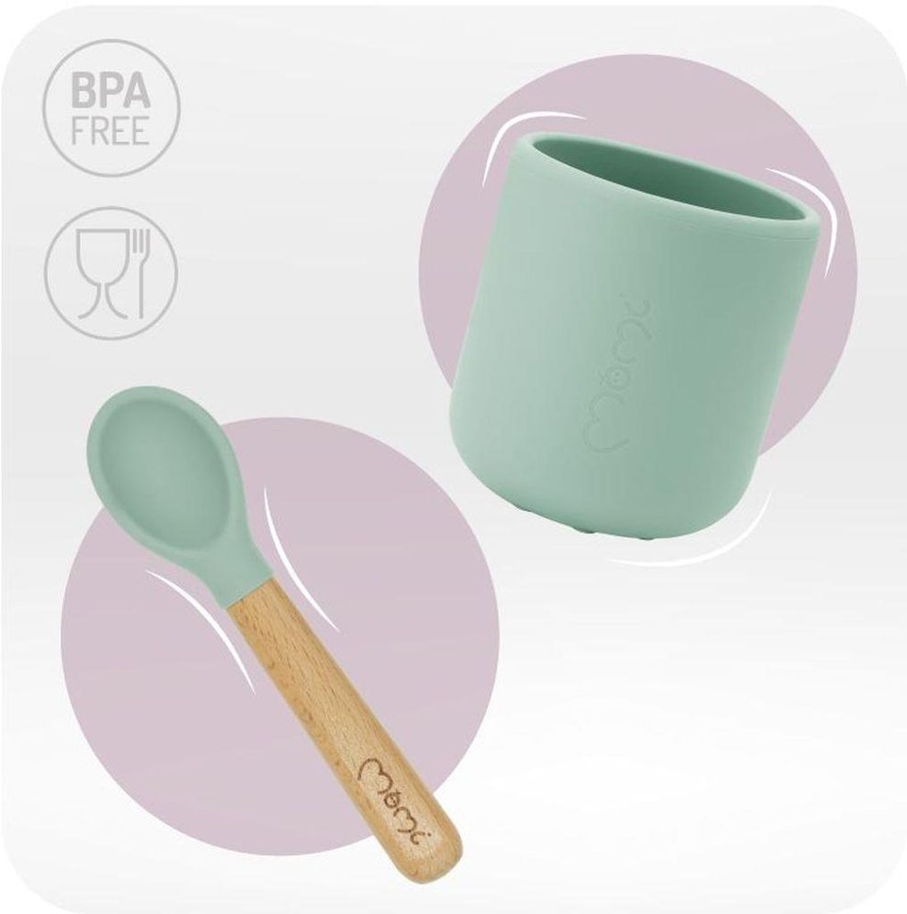 Nádobí MoMi AMI je vyrobeno ze silikonu bezpečného pro styk s potravinami. Neobsahuje BPA ani ftaláty a je dodáváno v barevné dárkové krabičce – ideální jako dárek!