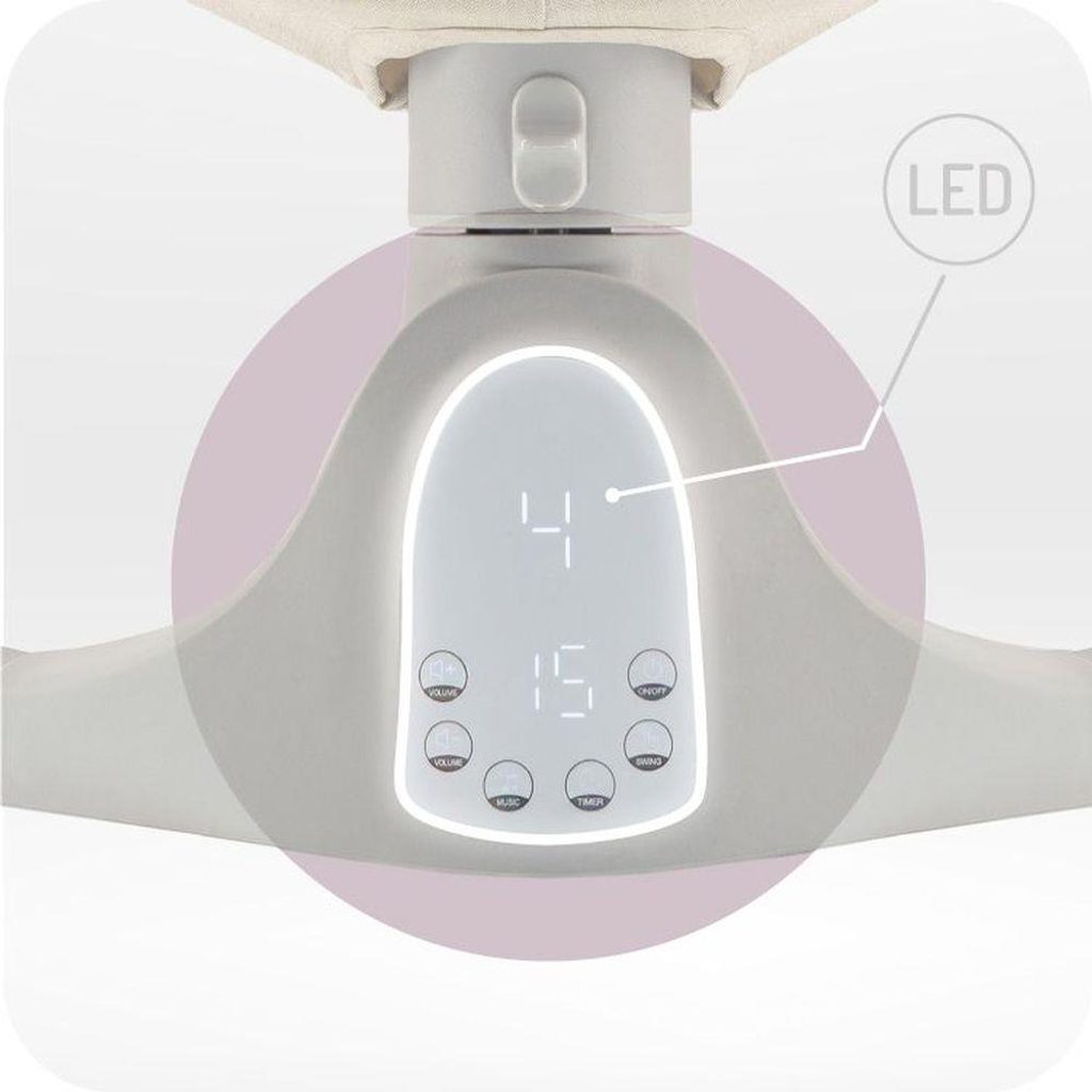 MoMi KENANI béžové je dodáváno také s dálkovým ovládáním, takže můžete snadno měnit režimy houpání, aniž byste museli jít k houpačce. Můžete také nastavit dobu houpání na 8, 15 nebo 30 minut.