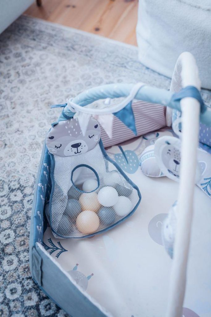MoMi PASTEL kombinuje funkce vzdělávací podložky se senzorickými hračkami a ohrádky, kde si vaše dítě může bezpečně hrát. Podložka MoMi PASTEL je zároveň suchým bazénem s míčky.