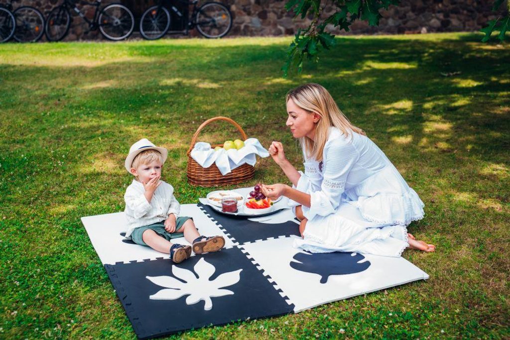 Velké prostorové listy, které jsou součástí puzzle, jsou pro dítě skvělou hračkou na hraní. Až z podložky vyrostou, můžete ji pomocí oboustranné lepicí pásky použít jako dekorativní prvek.