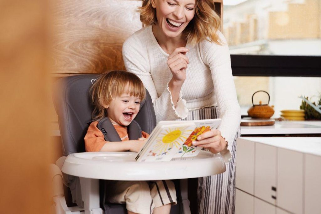 Židle má dvoustupňové nastavení tácu, a co je důležité, vnější tác lze mýt v myčce nádobí.