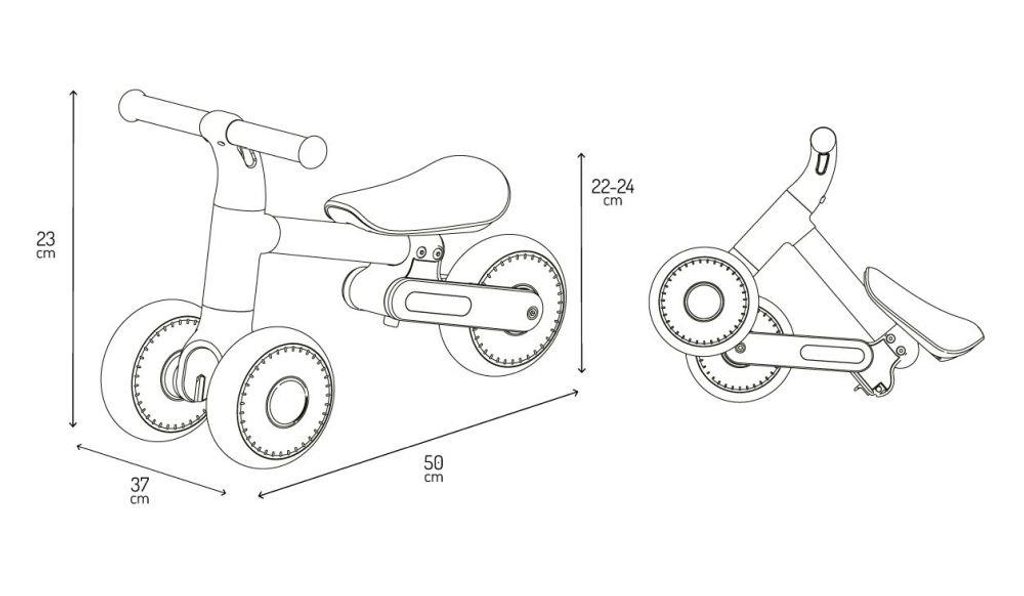 Sedadlo odrážedla MoMi DEX má dvě výškové úrovně pro dokonalé přizpůsobení potřebám dítěte.