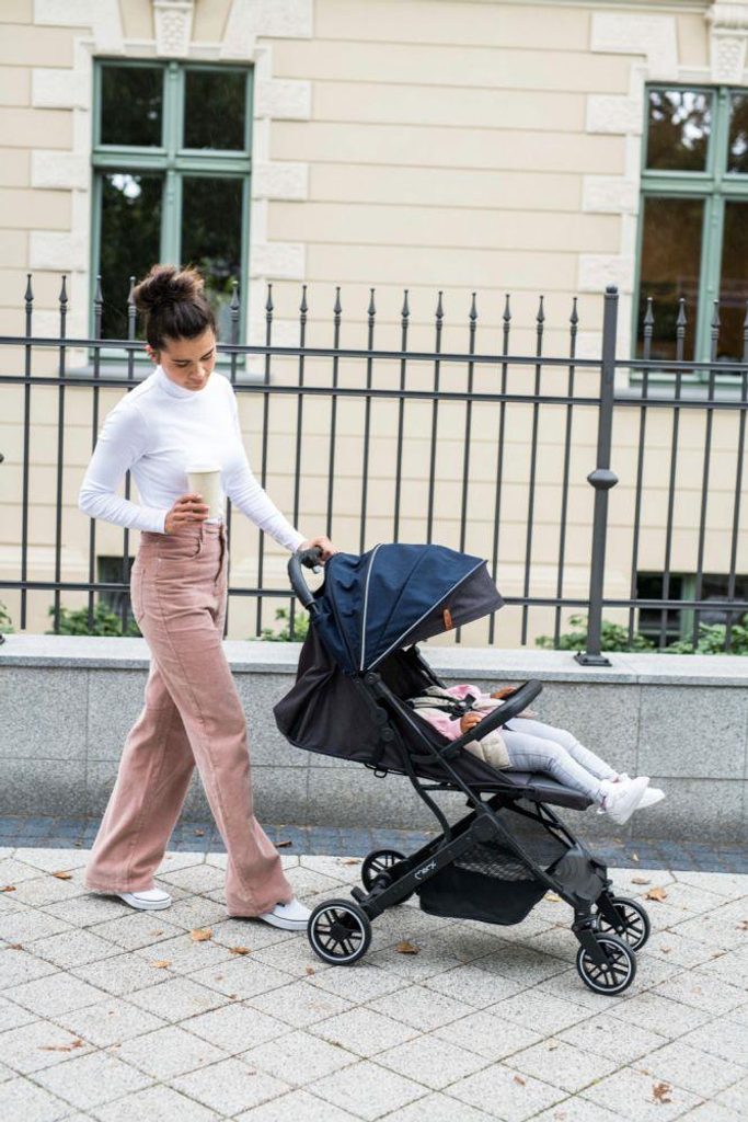 - Dvojitá bezpečnostní pojistka zabraňující nechtěnému složení nebo rozložení kočárku