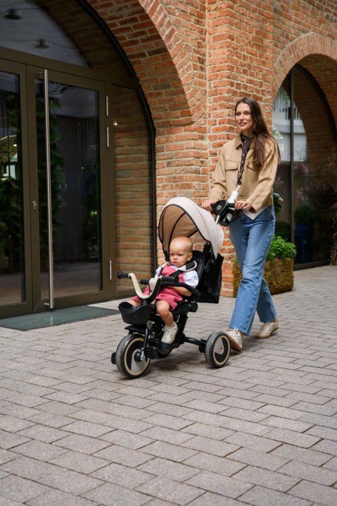 MoMi IVI nabízí hned 3 funkce! Nejmenší děti mohou sedět otočené směrem k rodiči, zatímco starší si užijí jízdu na šlapací tříkolce. MoMi IVI má nastavitelnou sedačku a opěrku zad, sklopnou opěrku nohou a volnoběh. Součástí balení jsou také praktické doplňky – taška a držák na hrnek.