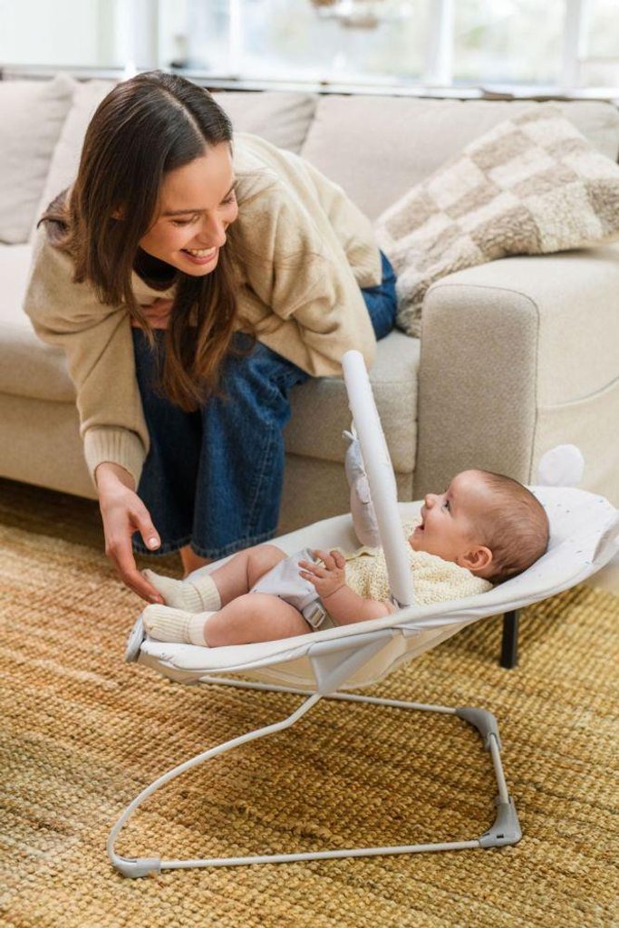 MoMi GLOSSY je pohodlné vibrační lehátko se senzorickým modulem, který nabízí 8 melodií a 3 úrovně vibrací – postará se tak o klid a relaxaci vašeho miminka. Součástí je odnímatelná hrazdička se dvěma senzorickými hračkami pro podporu rozvoje smyslů. Potah z kvalitní textilie lze snadno sundat a vyprat v pračce, takže je houpátko vždy čisté a připravené k použití.