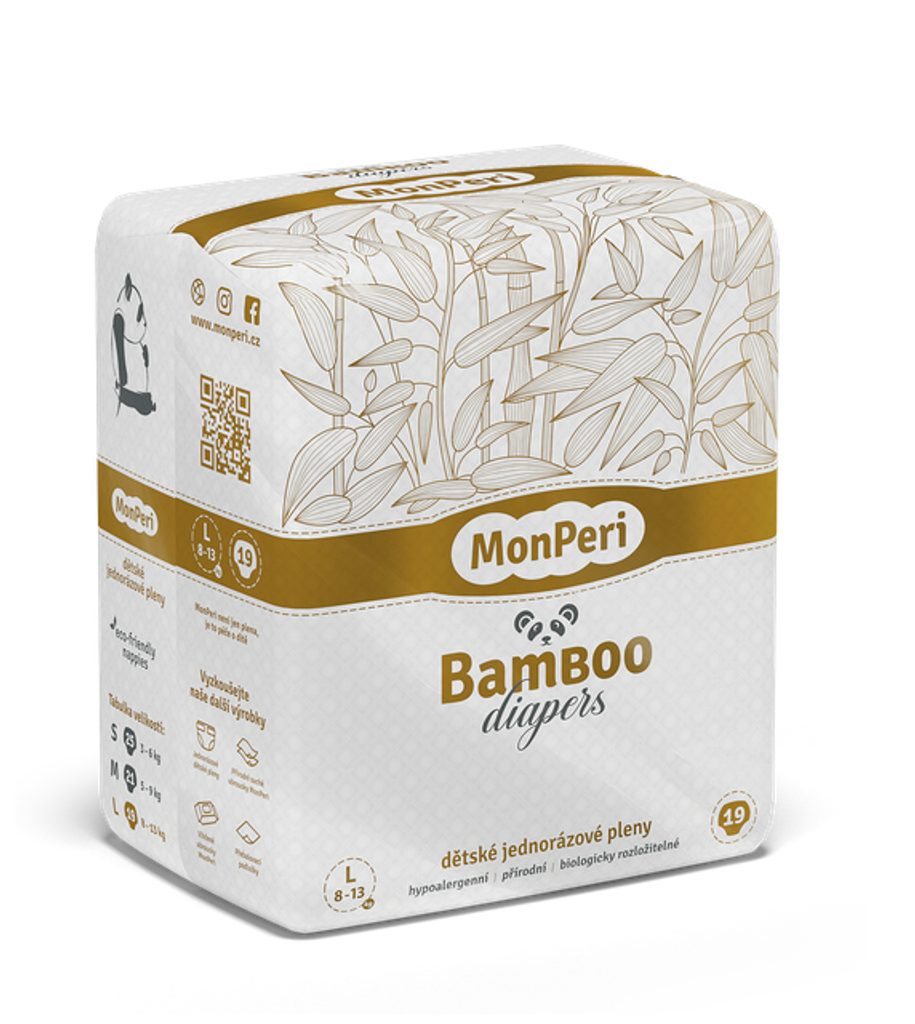 Bambusové jednorázové EKO pleny MonPeri Bamboo L (8–13 kg) – 19 ks