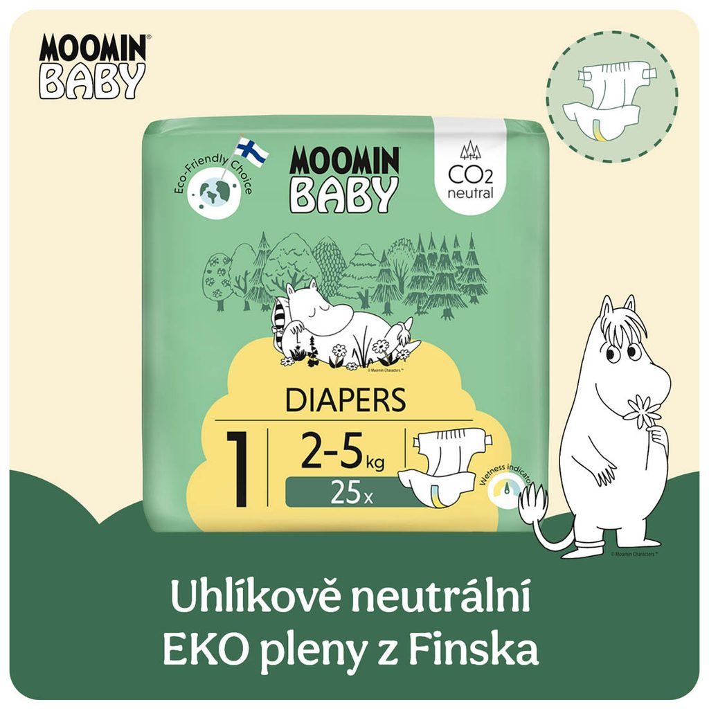 Moomin Baby 1 Newborn 2–5 kg (75 ks), měsíční balení eko plen + koš ZDARMA