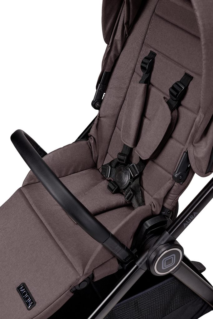 Kočárek je vybaven bezpečnostním madlem, protiskluzovou úpravou a dalšími detaily, které chrání dítě během jízdy. Plná gumová kola zajišťují stabilitu a plynulou jízdu, a to i na lehčím přírodním terénu. Díky chytrému skládacímu systému se AURA bez problémů složí i se sportovní sedačkou, což usnadní přepravu i skladování.