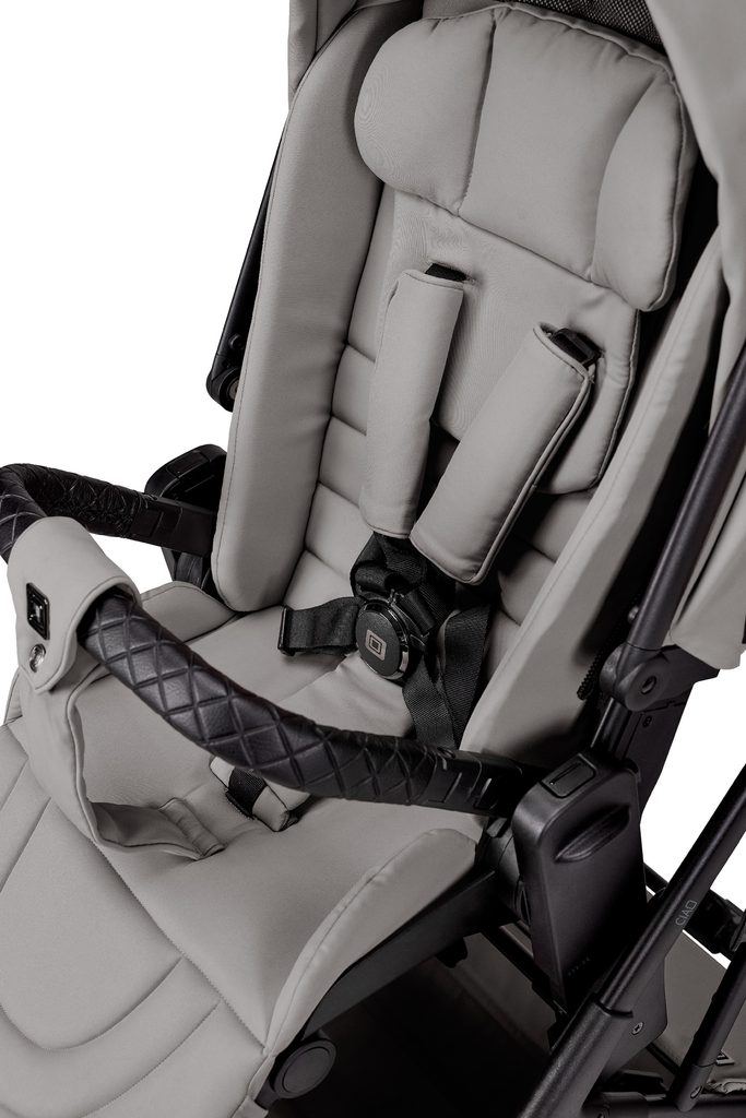 - Pětibodový pás s magnetickým zapínáním – snadno se ovládá, ale dítě bezpečně drží na místě.