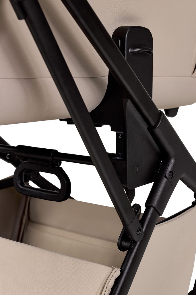 - Plynule nastavitelná opěrka zad – vhodná i pro větší děti, pohodlná v sedě i v lehu.