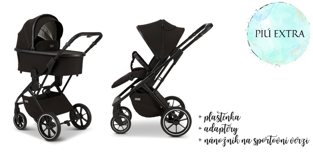 Kód: 64960631633, EAN: 4025583040033Kočárek MOON PIÚ vhodný od narození do 3 let, komfortní a lehká hluboká vana s rozepínatelnou stříškou s ventilační síťkou, hluboká vana s ventilačním odepínacím okénkem, exkluzivní prodyšná matrace PREMIUM firmy Träumeland, paměťové adaptéry pro snadné vyjmutí hluboké vany, prostorný sportovní sedák s rozepínatelnou stříškou a krytou ventilační síťkou, výškově nastavitelná zádová opěrka u sportovního sedáku s odvětráváním, polohovatelná opěrka zad a nohou až do úplného lehu, paměťové adaptéry u sportovního sedáku, opěrka nohou u sportovního sedáku nemá hranu, odnímatelné madlo před dítě s koženkovým potahem, výškově nastavitelná kloubová rukojeť, stříška hluboké vany a sportovního sedáku s UPF 50+ ochranou, sportovní sedák nastavitelný po i proti směru jízdy, polstrované bezpečnostní pětibodové pásy, přední gumová otočná kola s možností aretace, gumová zadní kola, prostorný úložný košík.https://www.babybusiness.cz/piu-black-matt-black/ Novinka: Paměťové adaptéry na hluboké vaně a sportovním sedáku Novinka: Výškově nastavitelná zádová opěrka u sportovního sedáku s odvětráváním Novinka: Opěrka nohou u sportovního sedáku nemá hranu Nánožník s odnímatelnou a pratelnou vložkou ke všem kočárkům MOON. Rozměry: 44 x 36 x 14 cmPláštěnku na hlubokou a sportovní část, adaptér na autosedačkuPříslušenství k dokoupení:Přebalovací taškaRolovací batohFusakRukávníkLed světla