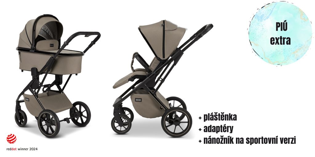Kód: 64960631622, EAN: 4025583040022Kočárek MOON PIÚ vhodný od narození do 3 let, komfortní a lehká hluboká vana s rozepínatelnou stříškou s ventilační síťkou, hluboká vana s ventilačním odepínacím okénkem, exkluzivní prodyšná matrace PREMIUM firmy Träumeland, paměťové adaptéry pro snadné vyjmutí hluboké vany, prostorný sportovní sedák s rozepínatelnou stříškou a krytou ventilační síťkou, výškově nastavitelná zádová opěrka u sportovního sedáku s odvětráváním, polohovatelná opěrka zad a nohou až do úplného lehu, paměťové adaptéry u sportovního sedáku, opěrka nohou u sportovního sedáku nemá hranu, odnímatelné madlo před dítě s koženkovým potahem, výškově nastavitelná kloubová rukojeť, stříška hluboké vany a sportovního sedáku s UPF 50+ ochranou, sportovní sedák nastavitelný po i proti směru jízdy, polstrované bezpečnostní pětibodové pásy, přední gumová otočná kola s možností aretace, gumová zadní kola, prostorný úložný košík.https://www.babybusiness.cz/piu-black-chrome-mud/ Novinka: Paměťové adaptéry na hluboké vaně a sportovním sedáku Novinka: Výškově nastavitelná zádová opěrka u sportovního sedáku s odvětráváním Novinka: Opěrka nohou u sportovního sedáku nemá hranu Nánožník s odnímatelnou a pratelnou vložkou ke všem kočárkům MOON. Rozměry: 44 x 36 x 14 cmPláštěnku na hlubokou a sportovní část, adaptér na autosedačkuPříslušenství k dokoupení:Přebalovací taškaRolovací batohFusakRukávníkLed světla