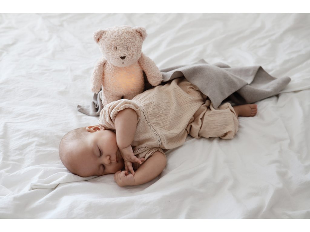 Moonie usínáček ve tvaru roztomilého medvídka s nočním světlem a uklidňujícími zvuky pomáhá miminku rychleji usnout a cítit se bezpečně. Relaxační zvuky, které připomínají prostředí v děloze, zahrnují tlukot srdce, vítr, lesní potok, mořské vlny a déšť, ale také kalimbovou ukolébavku, dvě klasické ukolébavky a možnost nahrání vlastního hlasu rodičů.